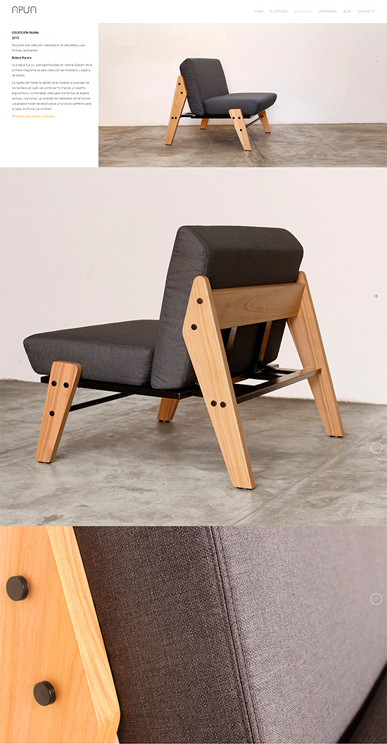 Página web para las promesas del diseño de Estudio Apua, presentación del perfil profesional del equipo y portafolio de diseños y proyectos.